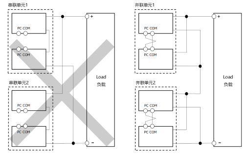 1. 串聯的電源單元不能并聯